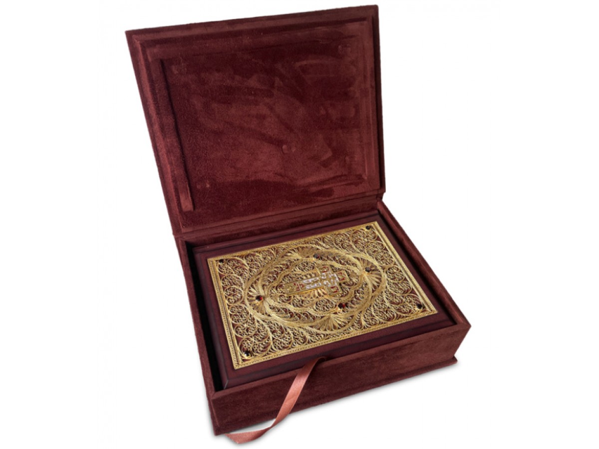 Эксклюзивное подарочное издание в переплете ручной работы из натуральной кожи с трехсторонним золотым обрезом. Книга оформлена филигранью ручной работы покрытая золотом, гранаты, художественное литье покрытое золотом, расписанное вручную горячей эмалью. Книга упакована в шкатулку из натуральной замши ручной работы. Каждое изделие уникально, цвет кожи может незначительно отличаться от представленного на фотографии.