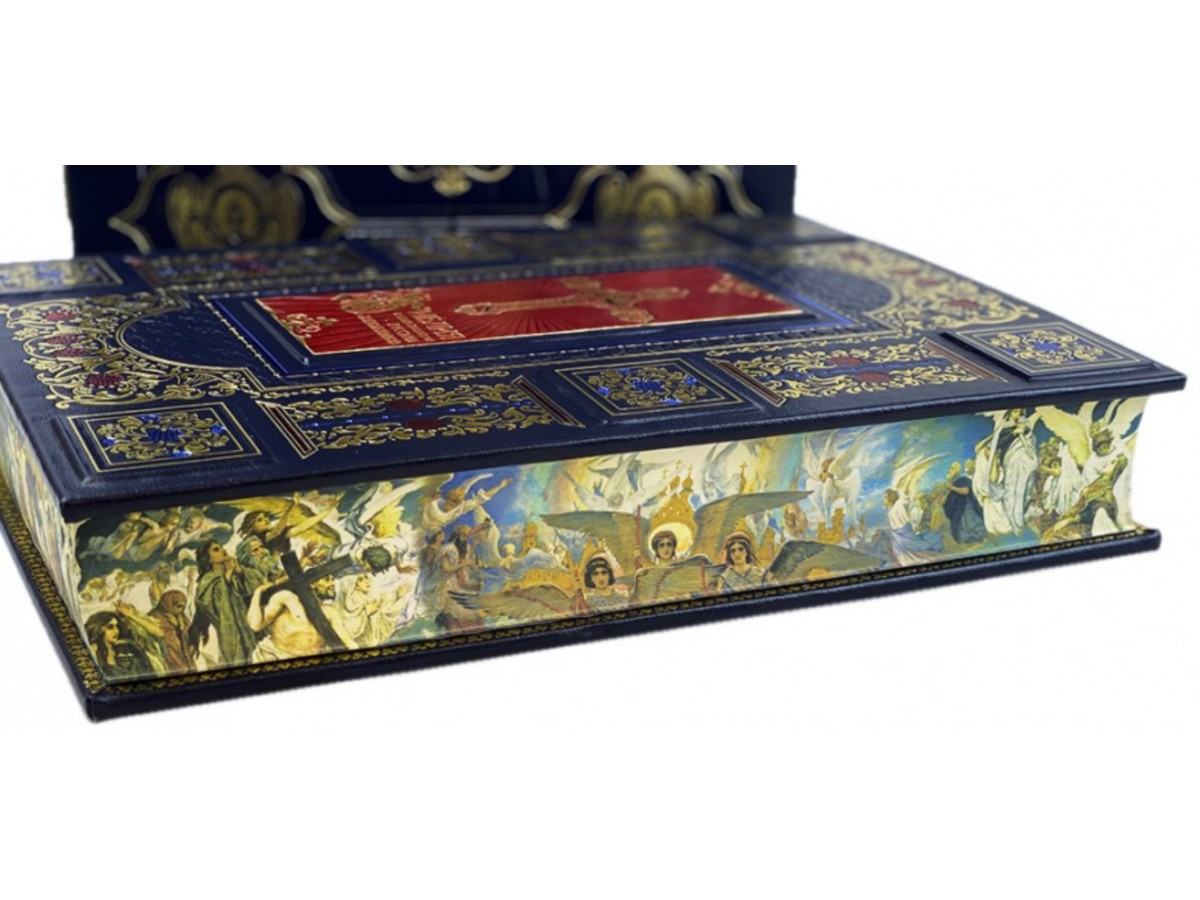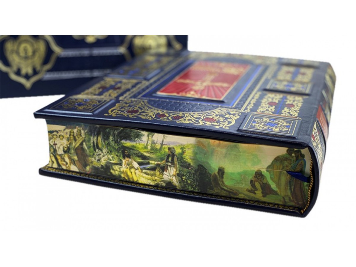 «Библия с иллюстрациями русских художников» объединяет лучшие, поистине выдающиеся произведения русской классической художественной школы XVIII - начала ХХ веков, созданные на темы Священного Писания и являющиеся великим, драгоценным достоянием всей отечественной культуры. В книге ярко и убедительно представлено художественное наследие замечательных мастеров прошлого, посвятивших значительную часть своего творчества библейским сюжетам. Среди художников, творческая деятельность которых нашла отражение в «Библии...», такие выдающиеся имена, как В. Боровиковский, Ф. Бруни, К. Брюллов, А. Иванов, В. Поленов, Н. Ге, В. Врубель, В. Васнецов, а также - А. Лосенко, Н. Чернецов, А. Агин, А. Рябушкин и другие. «Библия с иллюстрациями русских художников» включает в себя полный текст Священного Писания Ветхого и Нового Заветов на русском языке (по Синодальному изданию Библии), сопровождающийся 250 иллюстрациями, размещенными по всей книге, где подробно описываются каждая из них. Эта книга, без сомнения, станет памятником величия и славы отечественного художественного искусства, которая по праву является гордостью Российской Державы. Следует отметить, что в XIX веке в Реестре государственных наград Российской Империи упоминалась Наградная Библия. «Библия с иллюстрациями русских художников» возрождает многолетнюю традицию Наградной Библии, которая в старой России вручалась за особые заслуги перед Русской Православной Церковью и Российским государством.