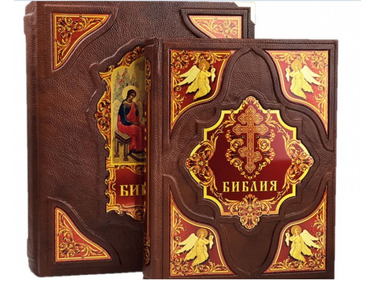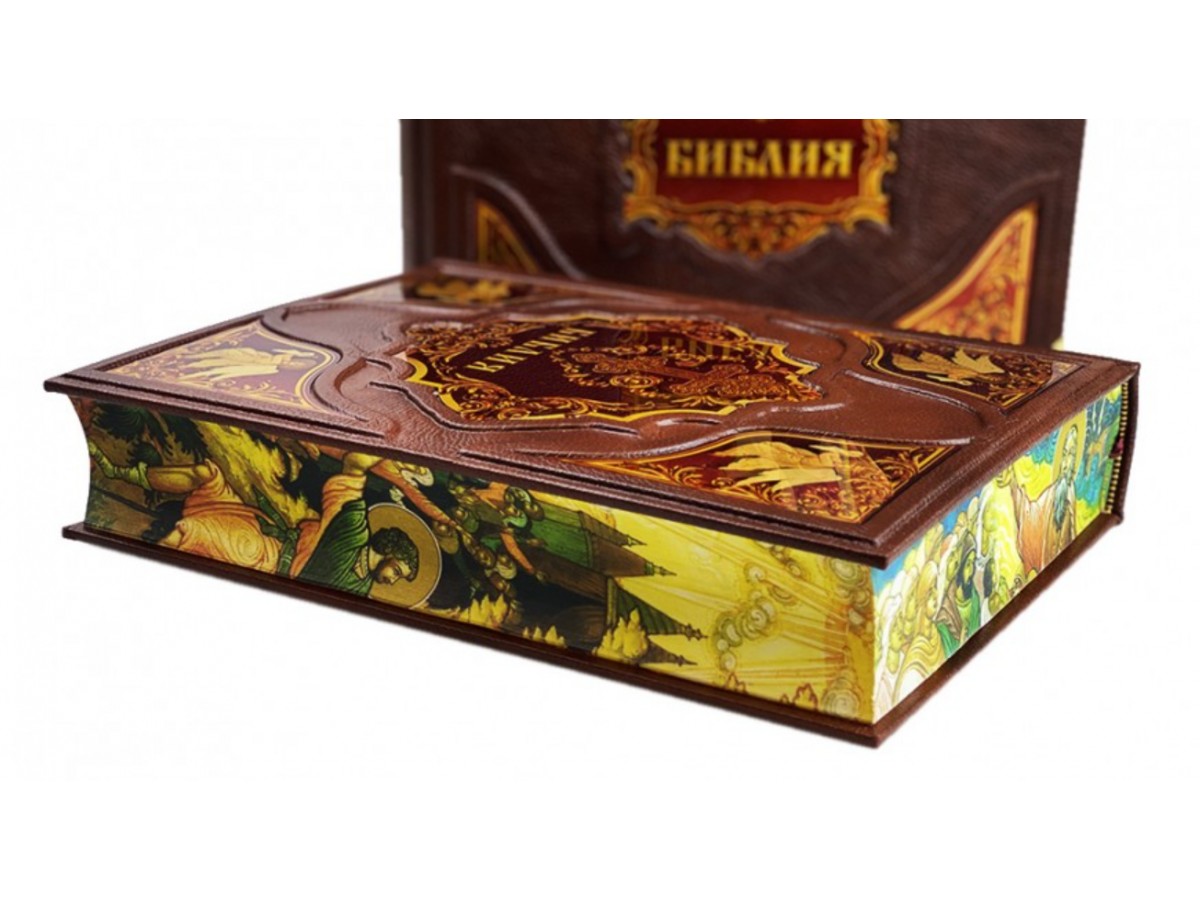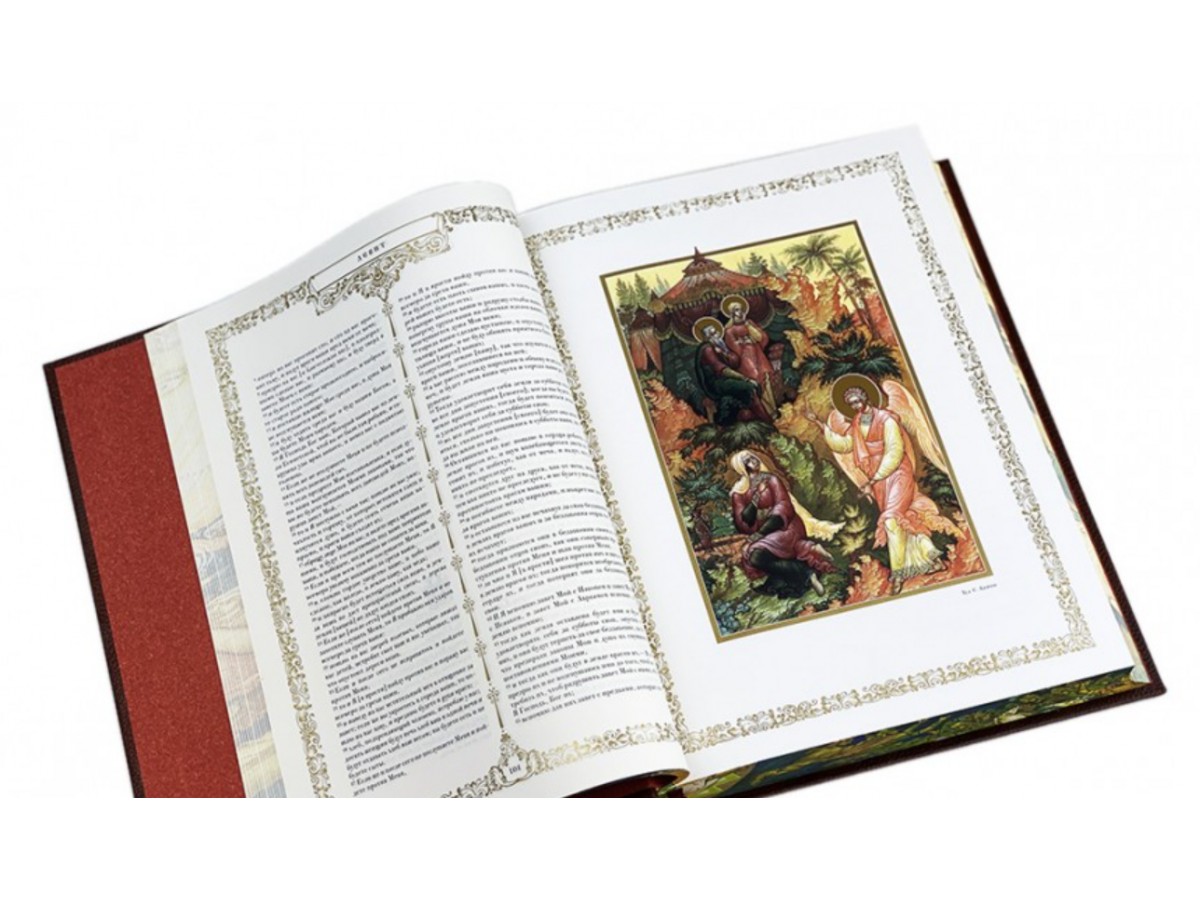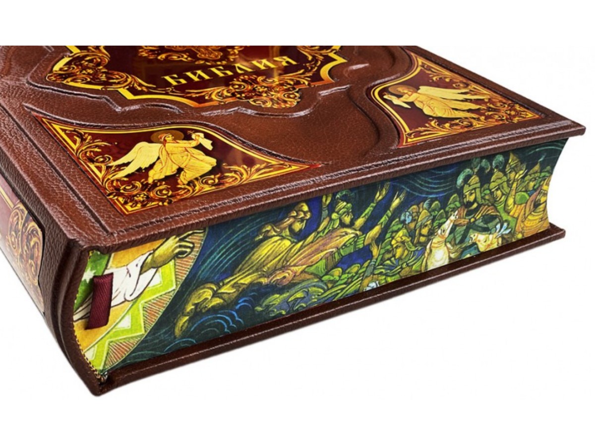 Подарочное издание содержит книги: Священного Писания Ветхого и Нового Завета. В тексте Ветхого Завета в квадратные скобки заключены слова, взятые авторами Синодального перевода из Септуагинты (греческой Библии). В тексте Нового Завета в квадратные скобки заключены слова, взятые из славянского перевода или поздних греческих рукописей.