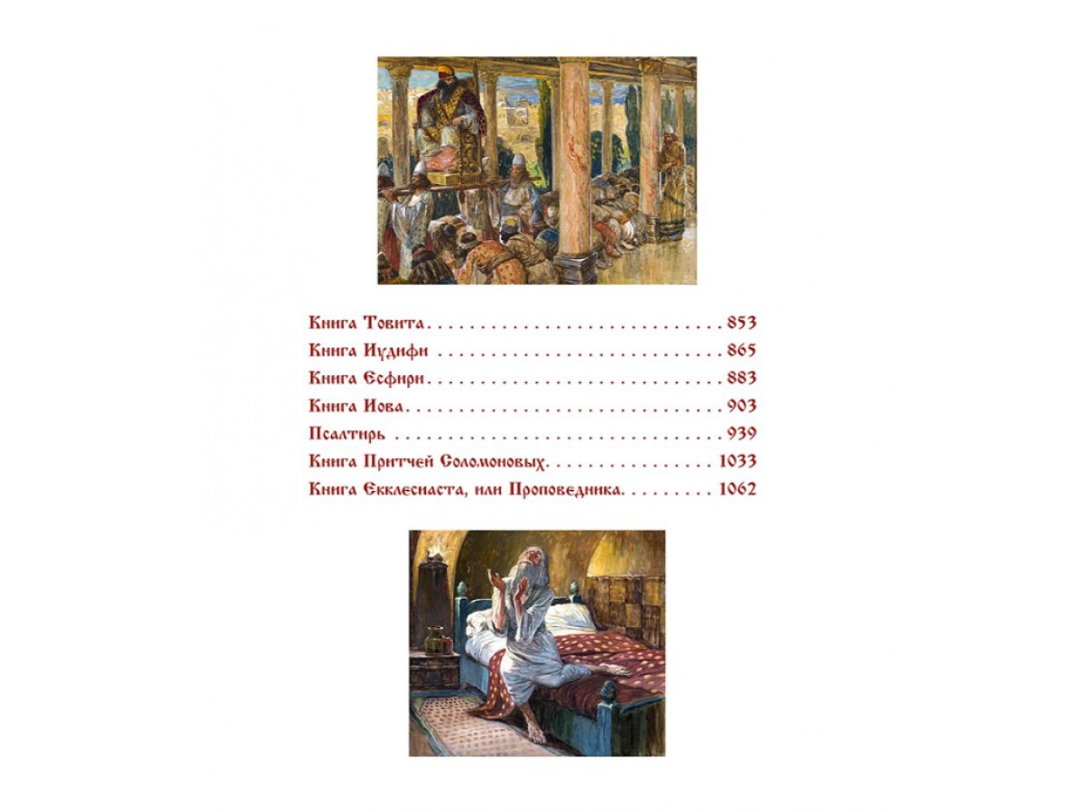 Библия — важнейшая книга христианства, одна из древнейших книг мира и значительнейших книг в истории. Ее переиздавали неисчислимое количество раз на разные языки мира, она была проиллюстрирована множеством талантливых художников. Красота и многообразие текста Ветхого завета в данном издании представлены в Синодальном переводе. Текст сопровождается цветными иллюстрациями, выполненными одаренным французским художником Джеймсом Тиссо.