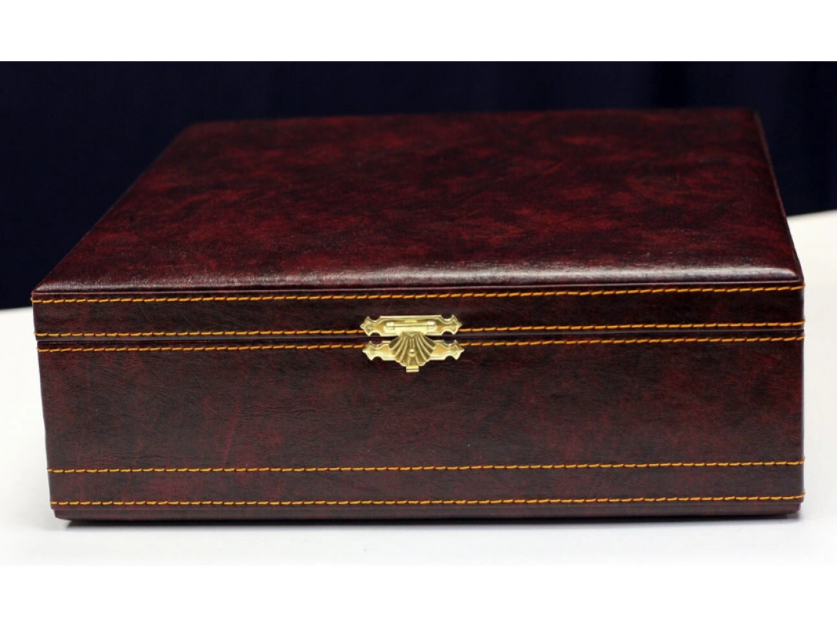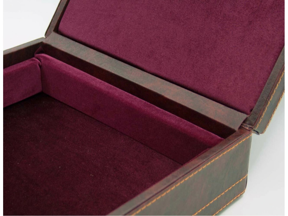 Подарочный футляр изготовлен из пластин МДФ и обтянут экокожей, что послужит отличным дополнением для Родословной книги.
