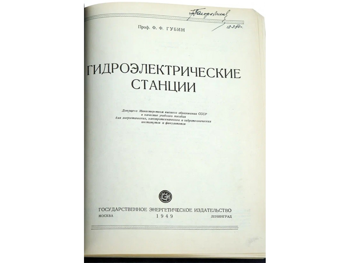 Гидроэлектрические станции. Губин Ф.Ф. Антикварная книга 1949 год.