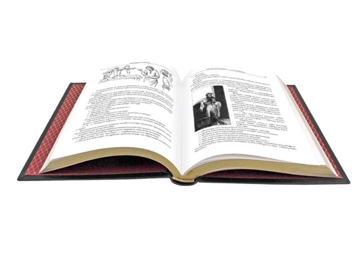 Классический европейский переплёт ручной работы из натуральной кожи. Форзац из дизайнерской бумаги Malmero с тиснением орнамента золотой фольгой. 6 бинтов на корешке, ручной обработки. Каптал золотой из натуральной кожи. Обрез блока - золото с торшонированием. Тиснение блинтовое, золотой и цветной фольгой. Ляссе.