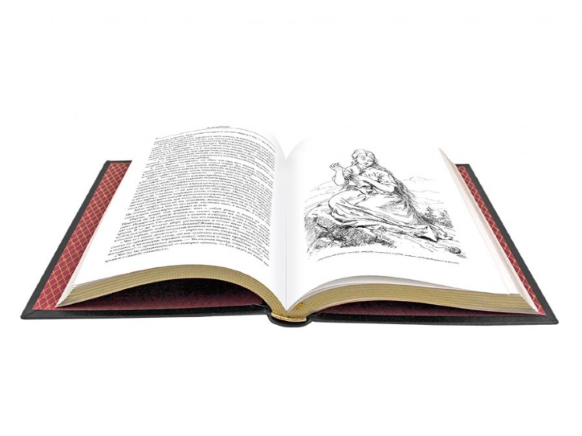 Классический европейский переплёт ручной работы из натуральной кожи. Форзац из дизайнерской бумаги Malmero с тиснением орнамента золотой фольгой. 6 бинтов на корешке, ручной обработки. Каптал золотой из натуральной кожи. Обрез блока - золото с торшонированием. Тиснение блинтовое, золотой и цветной фольгой. Ляссе.