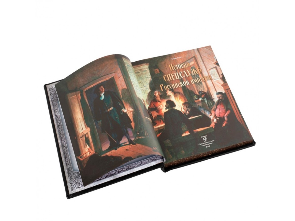 Подарочная книга «История спецслужб Российской империи» посвящена истории отечественных спецслужб, формировавшихся по мере становления и возмужания Российского государства. Повествование охватывает период с конца XVII в. до начала XX в. В него вплетены биографии руководителей секретных ведомств таких, как Александр Христофорович Бенкендорф и Леонтий Васильевич Дубельт — глава тайной полиции при Николае I, а также их документы и воспоминания. Подробно рассказывается о специальных службах Российской империи таких как: Тайная канцелярия, Отдельный корпус жандармов, Охранное отделение, Контрразведка, которые на протяжении более трех веков обеспечивали безопасность державы и прочность императорского трона.