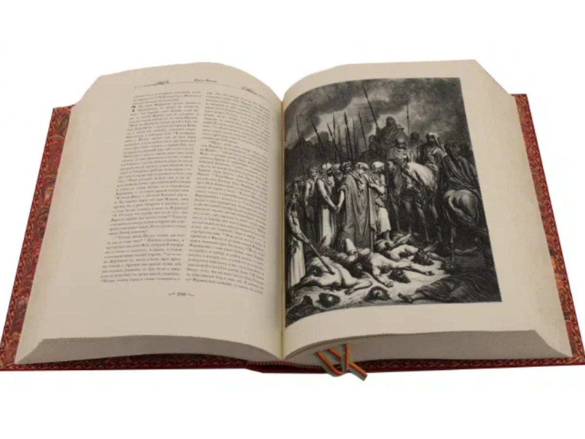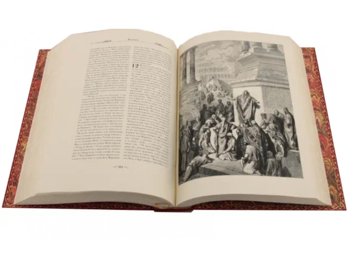 Текст печатается по изданию Российского Библейского общества, благословленному Святейшим Патриархом Московским и всея Руси Алексием II: Библия. Книги Священного Писания Ветхого и Нового Завета. «Весь Доре» – это серия книг, созданных по лучшему рецепту книгоиздания, когда наиболее совершенное литературное наполнение сопровождается непревзойденными иллюстрациями, а затем помещается в роскошный кожаный переплет. Работы всемирно известного французского художника Гюстава Доре (1832-1883 гг.), несомненно, представляют интерес для любителя качественной книги и рисунка, и даже для самого искушенного ценителя. Каждая из книг серии не просто ценна как культурное достояние своей эпохи, но и уникальна: многие из изданий серии впервые выходят в свет в том виде, в каком их видит наш читатель.