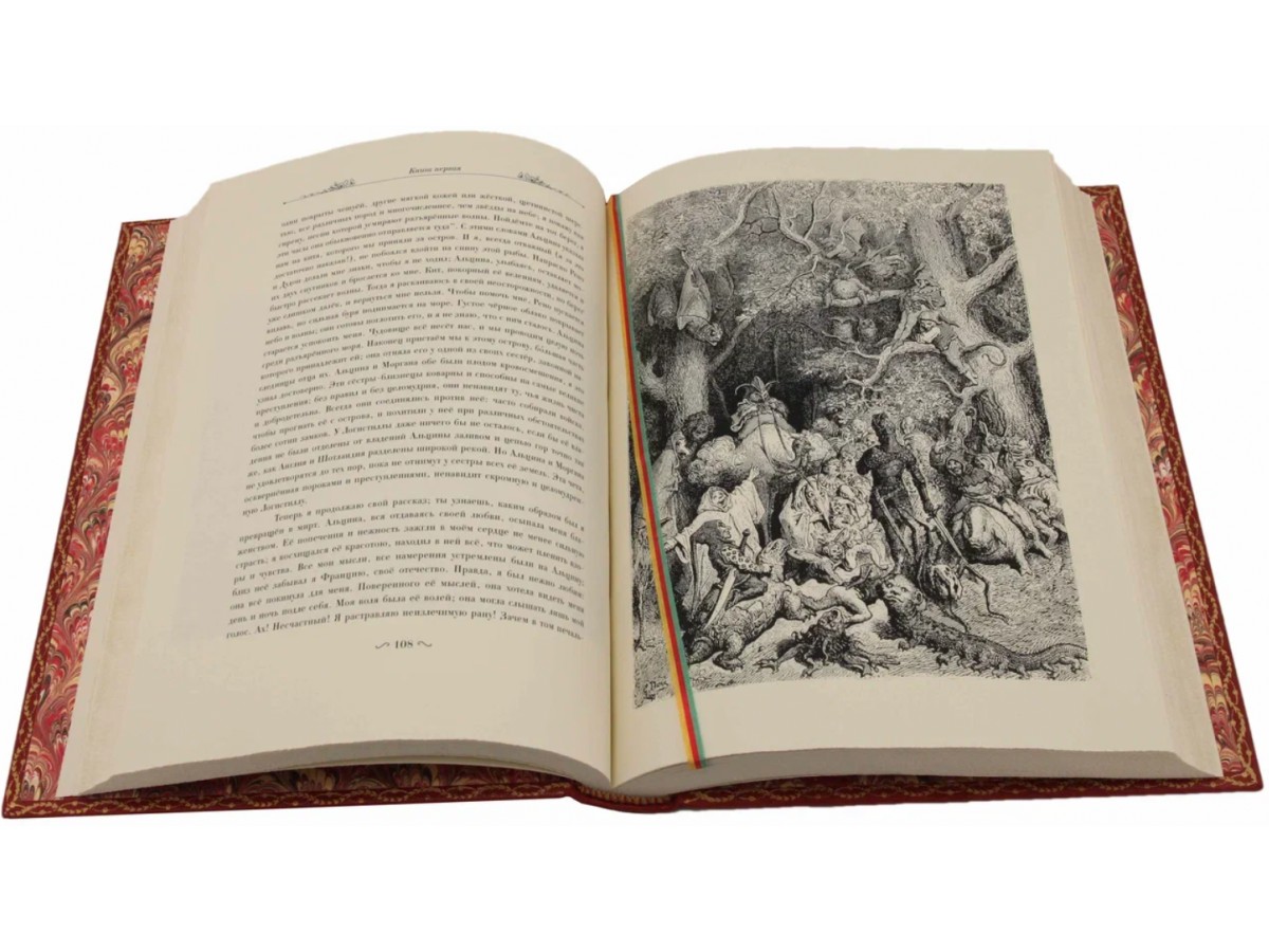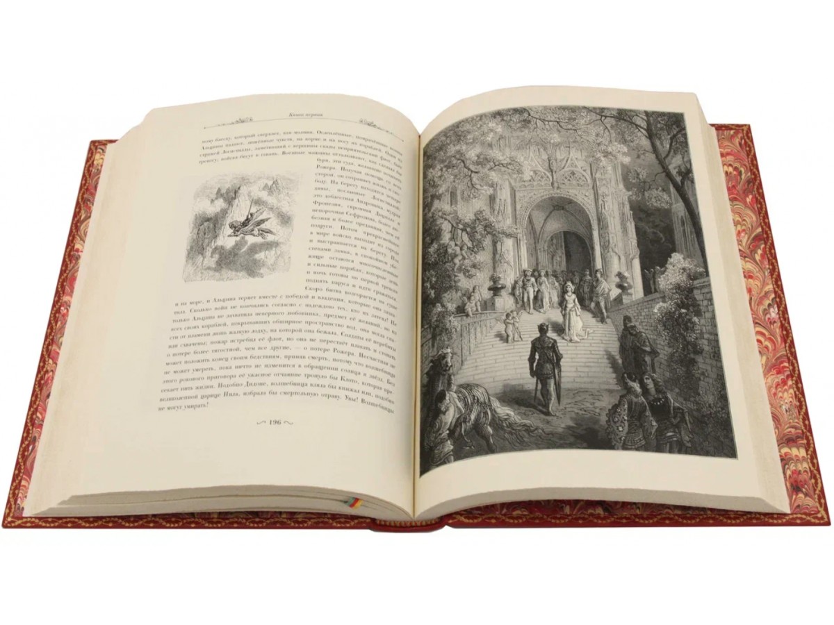Эта рыцарская поэма начинается почти с полуслова, подхватывая чужой сюжет, и является продолжением поэмы «Влюблённый Роланд» (Orlando innamorato), которую написал поэт Маттео Боярдо - ни много ни мало шестьдесят девять песен (поэма была опубликована посмертно в 1495 году). Ариосто добавил к ним ещё сорок семь своих, а под конец подумывал о том, чтобы продолжать и дальше. «Весь Доре» – это серия книг, созданных по лучшему рецепту книгоиздания, когда наиболее совершенное литературное наполнение сопровождается непревзойденными иллюстрациями, а затем помещается в роскошный кожаный переплет. Работы всемирно известного французского художника Гюстава Доре (1832-1883 гг.), несомненно, представляют интерес для любителя качественной книги и рисунка, и даже для самого искушенного ценителя. Каждая из книг серии не просто ценна как культурное достояние своей эпохи, но и уникальна: многие из изданий серии впервые выходят в свет в том виде, в каком их видит наш читатель.