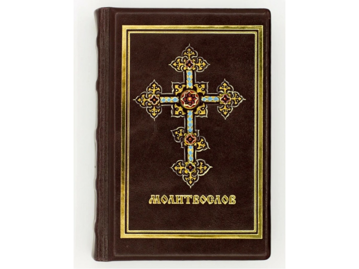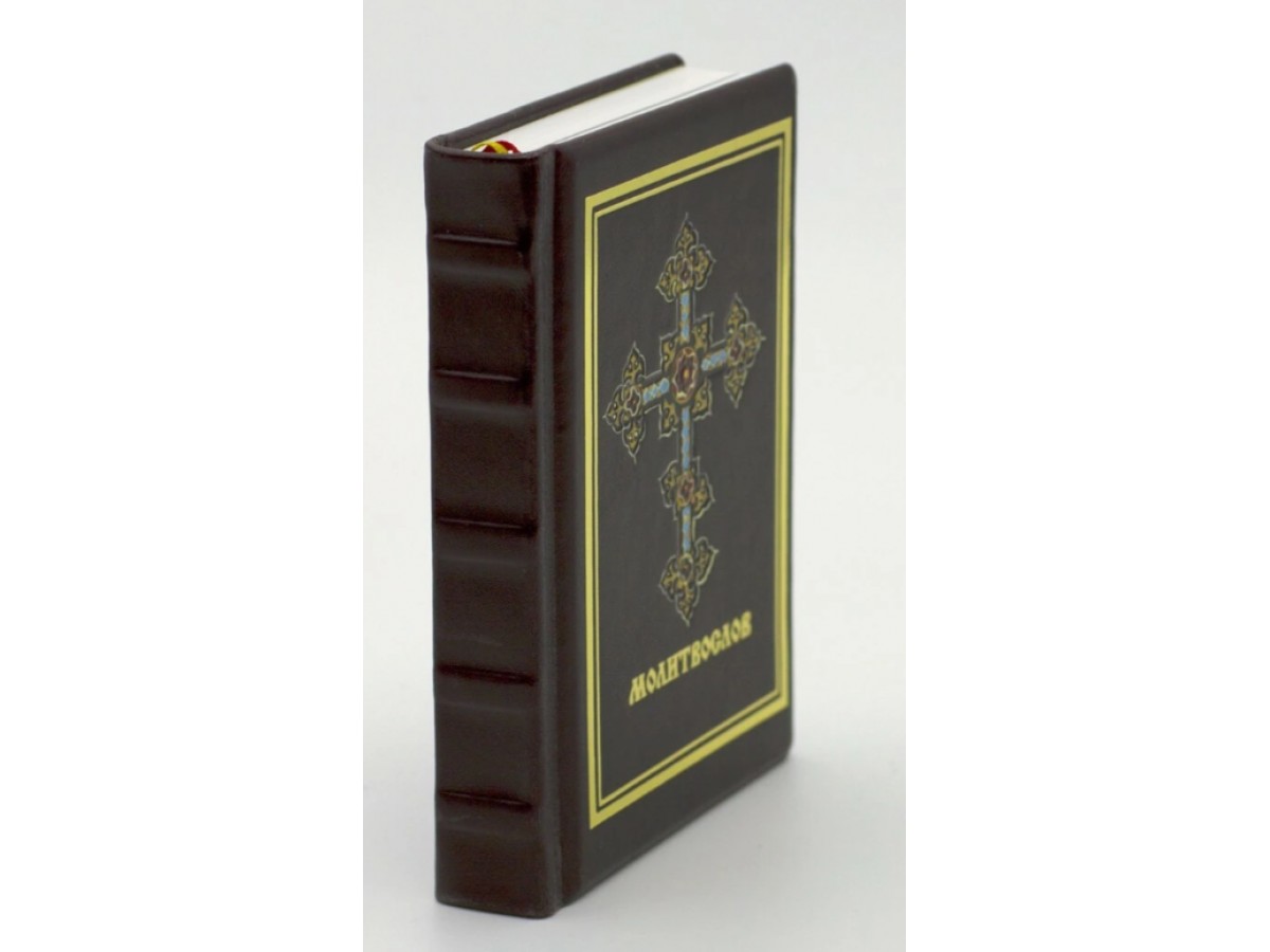 Молитвослов в переплете из натуральной мягкой телячьей кожи с использованием художественной росписи. Корешок выделен бинтами (полукруглыми элементами).