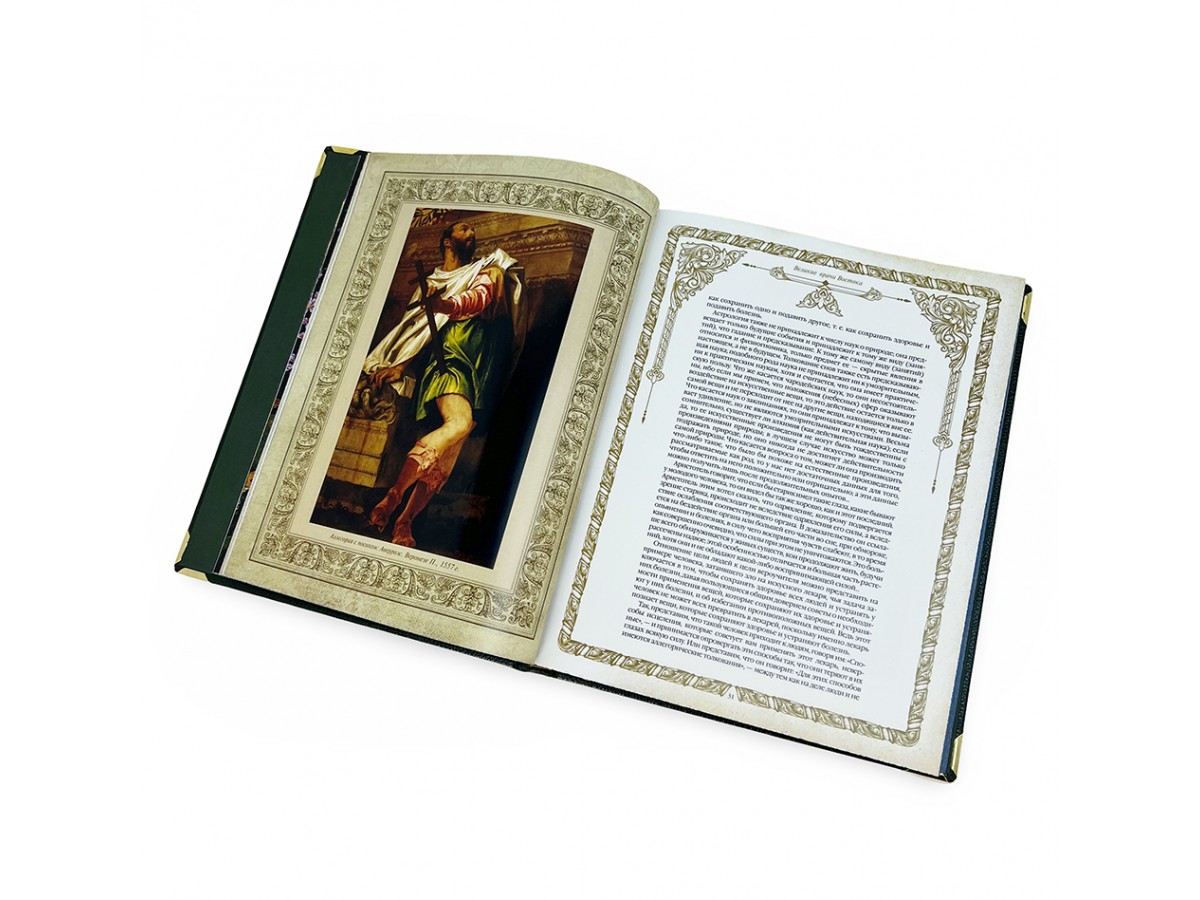Книга представлена в оригинальном подарочном коробе, сделанном из мдф и обтянутым вручную высококачественной натуральной кожей. Цельнокожаный переплёт ручной работы, украшен иллюстрированной вставкой из цветного металла. Обложка двухуровневая. Металлические уголки дополняют дизайн и сохраняют книгу при использовании. Текст книги напечатан на мелованной бумаге и дополнен цветными иллюстрациями. Обрез оформлен художественным изображением. Ляссе из шёлковой ленты. Форзац цельный из дизайнерской бумаги.
