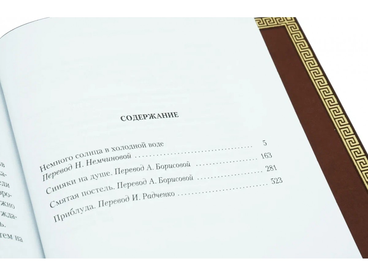 Франсуаза Саган называли Мадемуазель Шанель от литературы. Начиная с самого первого романа «Здравствуй, грусть!» (1954), наделавшего немало шума, ее литературная карьера складывалась блестяще, она с удивительной легкостью создавала книгу за книгой, их переводили на различные языки и они разлетались по свету миллионами экземпляров. Название «Немного солнца в холодной воде» навеяно строкой Поля Элюара. Историю, которую рассказывает в этой своей книге Франсуаза Саган, легко свести к простой формуле: он любил ее странной любовью, она его просто любила. Однако пересказать книгу невозможно - как музыку, как облака. Франсуаза Саган верна себе: ее проза – прозрачная, изящная, лишенная позы – доставляет радость все новым поколениям читателей.