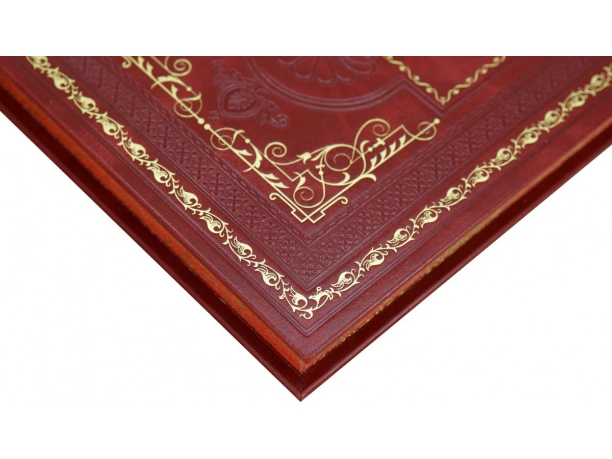 Кожаный переплет ручной работы с тиснением золотой фольгой.