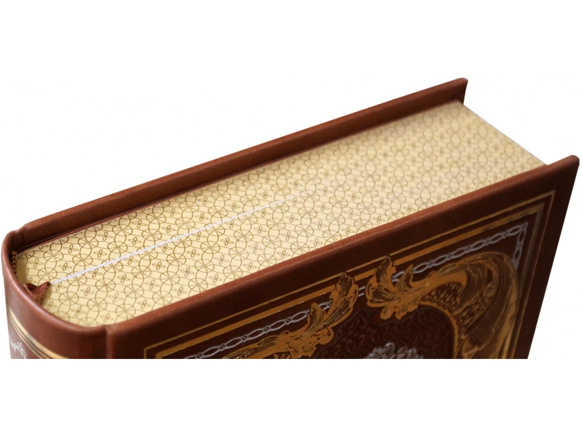 Книги в авторском дизайне «Ренессанс» передают лучшие традиции книжного переплетного ремесла. Цельнокожаный переплет ручной работы с тиснением фольгой немецкой фирмы "KURZ" (золотая, серебряная, чёрная). Блинтовое тиснение орнамента как на корешке книги, так и на передней и задней переплетных крышках. Трехсторонний тонированный обрез с золотым узором. Дизайнерская бумага. Форзацы из бархата. Тканевое ляссе и каптал ручного плетения. Вы также можете выбрать цвет кожи (на выбор более 20 цветов и оттенков), цвет фольги для тиснения орнаментом, цвет тонирования обреза. А, при желании, персонализировать книгу или собрание сочинений: добавить монограмму или логотип компании, разместить экслибрис или фамильный герб на форзаце, добавить поздравительный лист-сертификат в книгу с теплыми словами одаряемому.
