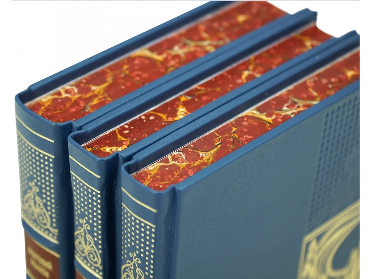 Кожаный составной переплет ручной работы.Авторский дизайн книги, на обложке в виде художественной вставки с объемным эффектом, тиснение золотой фольгой (производства KURZ, Германия), марки на корешке из фольги бордового цвета с матовым эффектом (производство Турция); трехсторонний обрез книжного блока, оформленный узором «под мрамор»; ляссе-закладка в цвет переплета,форзац из высококачественной дизайнерской бумаги.