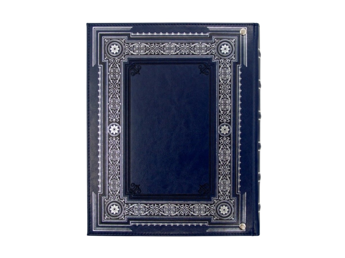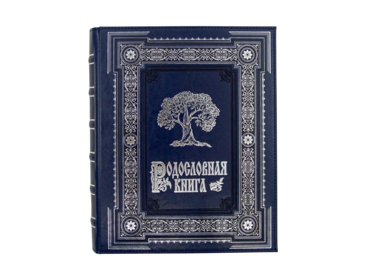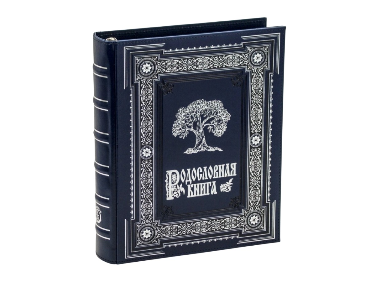 Переплёт родословной книги выполнен из пластин финского картона и вручную обтянут качественной экокожей. По всему периметру книги тиснение «золотой» фольгой, а также блинтовое тиснение (без фольги). На лицевой стороне обложка Родословной книги украшена изображением древа, выполненного тиснением золотой фольгой. Можно выбрать дизайн блока: Барокко (170 страниц) или Модерн (216 страниц). На цену покупаемой Вами родословной книги это не влияет.