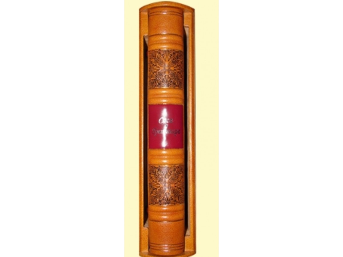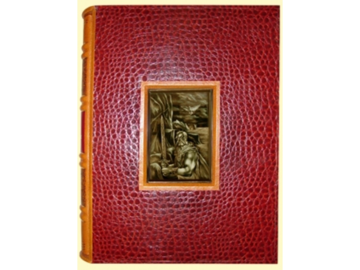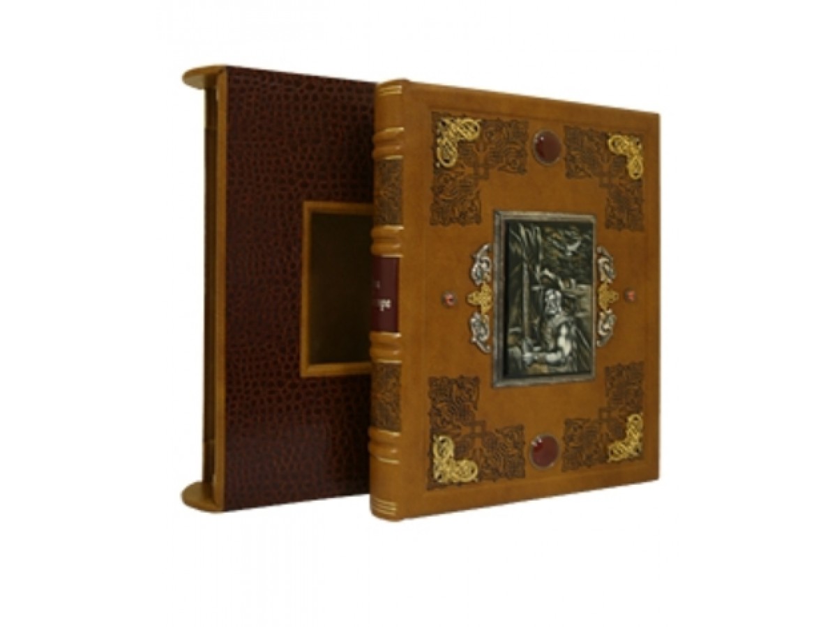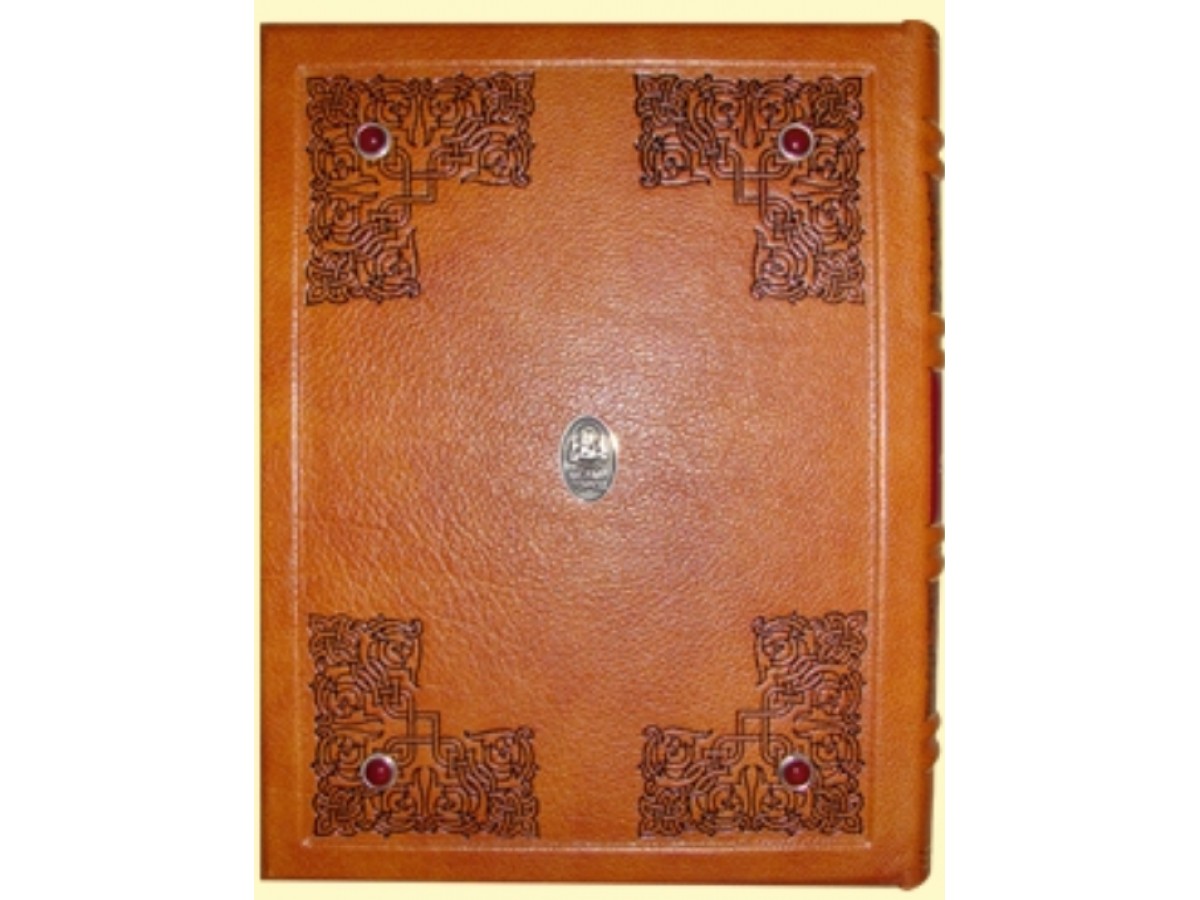 Одна из самых увлекательных скандинавских саг в особенном оформлении. Каждая страница украшена цветными скандинавскими орнаментами (печать в четыре краски). Специально созданные для этого издания иллюстрации, отражающие дух суровой эпохи викингов, вклеены вручную. Это издание буквально напоено мощной энергетикой севера благодаря полной гармонии содержания и оформления. Печать в 4 краски, печать золотой пастой, печать серебряной пастой. Французский цельнокожаный переплет ручной работы на трех шнурах. Кожа натуральная, цвет – песок (Италия). Форзац раздельный на кожаной слизуре. Каптал шелковый ручного плетения. Тиснение чёрной фольгой. Обрез окрашенный и полированный. Ювелирные украшения переплета – серебро 925 пробы, вес 315 граммов, чернение, золочение. Сычуаньский сердолик, цветные фианиты. Подлаковая живопись (Федоскино).