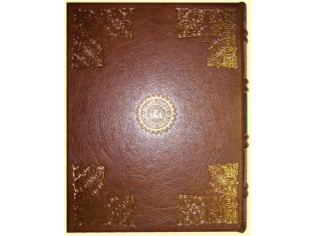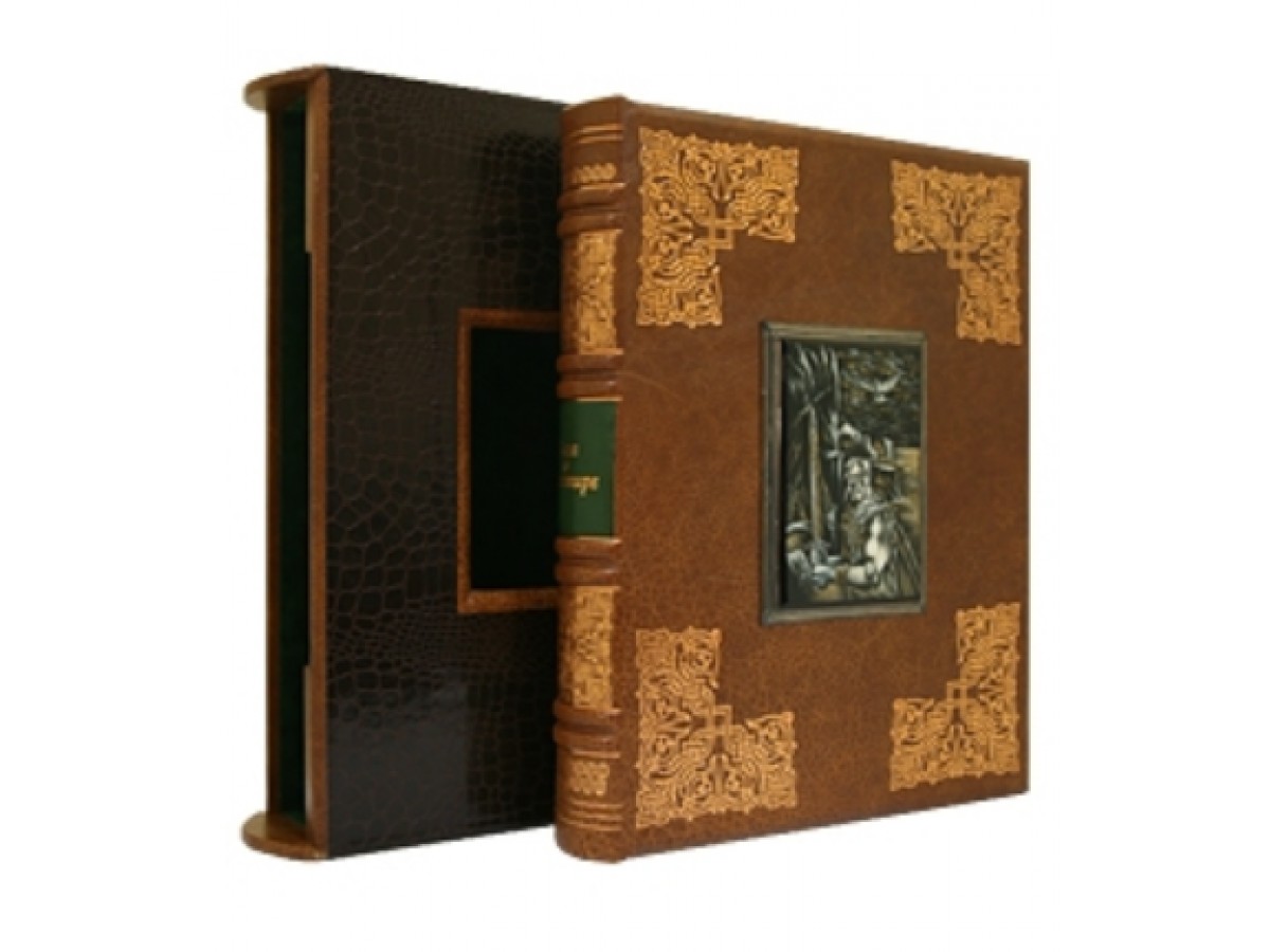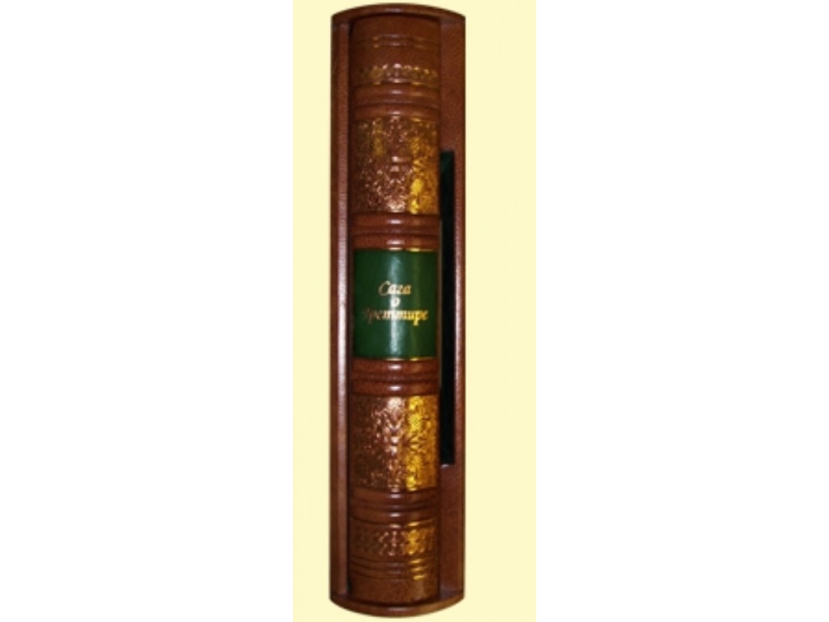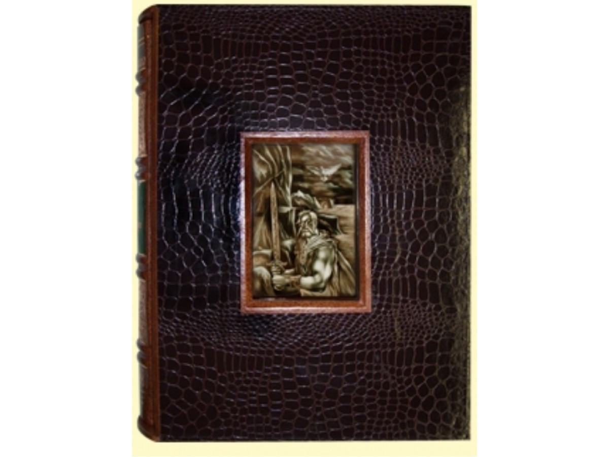Одна из самых увлекательных скандинавских саг в особенном оформлении. Каждая страница украшена цветными скандинавскими орнаментами (печать в четыре краски). Специально созданные для этого издания иллюстрации, отражающие дух суровой эпохи викингов, вклеены вручную. Это издание буквально напоено мощной энергетикой севера благодаря полной гармонии содержания и оформления. Печать в 4 краски, печать золотой пастой, печать серебряной пастой. Французский цельнокожаный переплет ручной работы на трех шнурах. Кожа натуральная, цвет – песок (Италия). Форзац раздельный на кожаной слизуре. Каптал шелковый ручного плетения. Тиснение бронзовой фольгой. Обрез окрашенный и полированный. Ювелирные украшения переплета – серебро 925 пробы, вес 105 граммов, чернение. Подлаковая живопись (Федоскино).