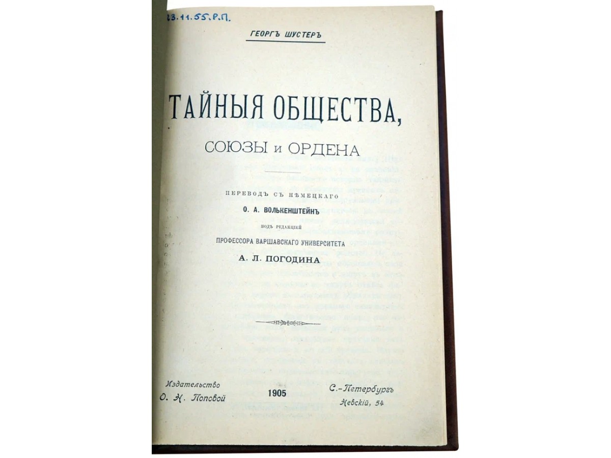 Тайные общества, союзы и ордена. Г.Шустер. Антикварная книга 1905 г.